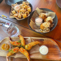“ We had tacos and chicken wings, both were great! Cocktails were also good! We had dinner inside in a very small table for 3 people. We got a lot of attention from the staff, but eventually that turned into a hard sell for more food and desert. The singer had a great voice and repertoire but in-between songs she was advertising the cocktails, which complemented our sell-hard experience. ”